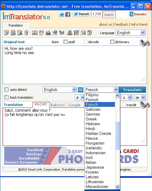 Free translation service provides instant translations of words, phrases and texts between 55 languages using 3 online translation...