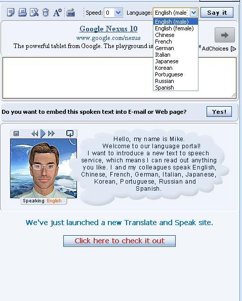 ImTranslator Text-to-Speech service converts any text into voice in English, French, German, Italian, Spanish, Portuguese, Russian, Chinese, Japanese, and Korean...