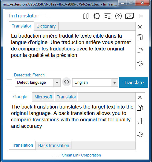 Although the back translation does not always provide the same translation result due to the asymmetric sentence structure in different languages, this feature may give you additional benefit to make sure your text is understandable.