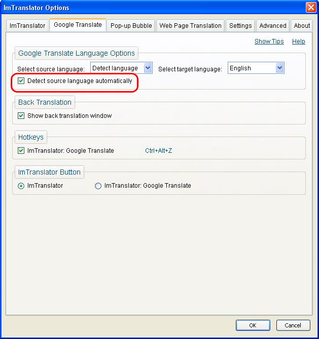 - Set the source language. You may also choose the source language in ImTranslator: Google Translate window during the translation session, and it will be used during this browser's session, until the browser is open.