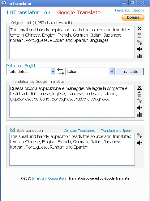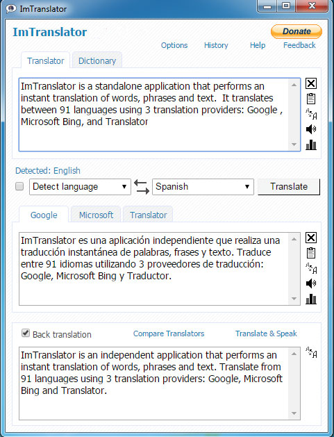 ImTranslator Application performs instant translation of words, phrases, texts and webpages, reads the translation in many...