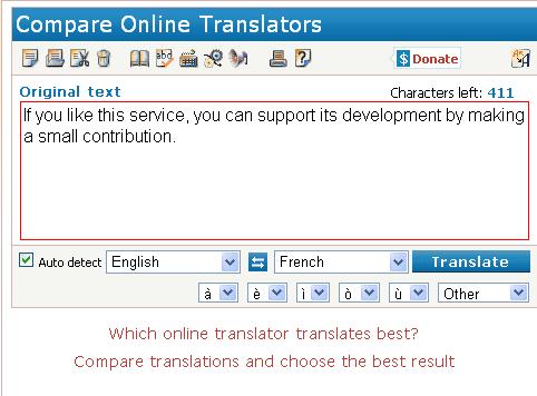 The Translations Comparison tool translates texts and compares the translation results between various online translation providers: Google Translate, Microsoft Translator, Babylon Translator and...